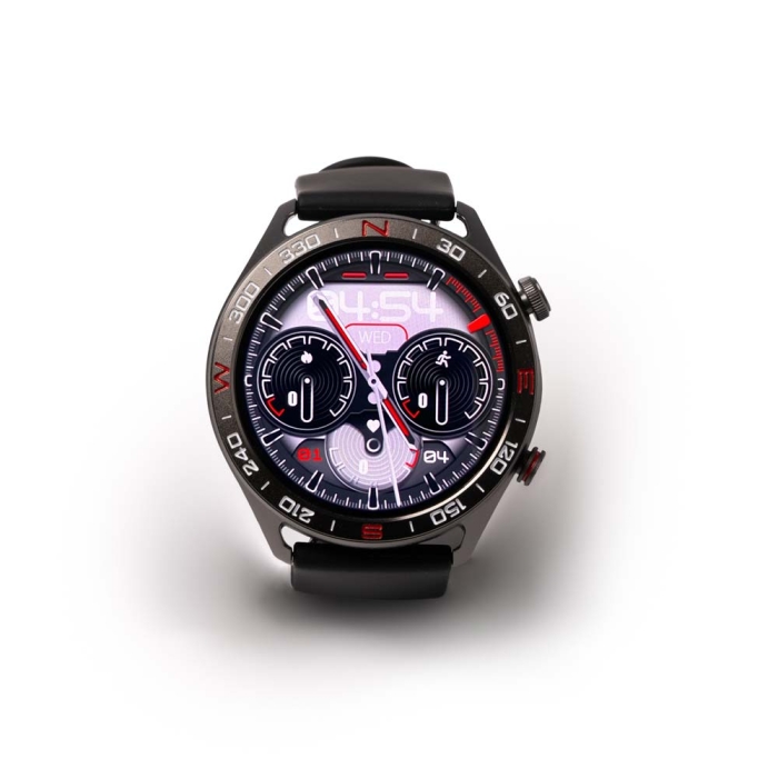 Art. ST2306 Smartwatch con funzioni di attività. Quadrante con finitura metallica, cinturino in silicone con display AMOLED touchscreen da 1,43". Resistente all'acqua con grado di protezione IP68. Dispone di oltre 100 modalità sportive, cardiofrequenzimetro, controllo delle chiamate, connessione all'assistente vocale e localizzatore di smartphone. Connessione APP per IOS e Android. Cavo USB incluso. Confezionato in una scatola.