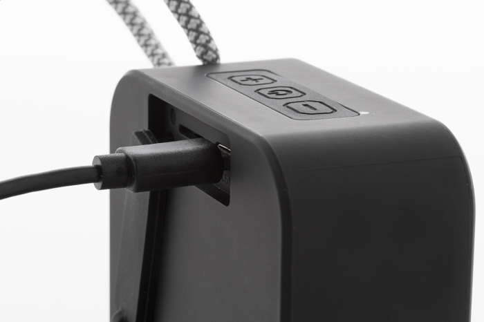 Art. AP97510 Cassa wireless in ABS riciclato con griglia metallica, batteria ricaricabile (300 mAh) e funzione di riproduzione micro SD MP3. Cavo di ricarica USB incluso.
