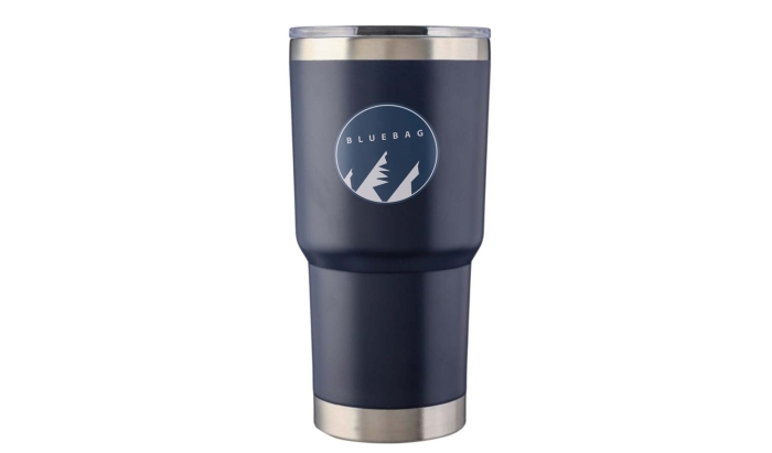 Art. GV2282301 TTazza in acciaio inox 304 (esterno acciaio inox 201), doppia parete, coperchio in PS, logo ”acciaio inox riciclato” sul lato anteriore della tazza, confezionata singolarmente in scatola in cartone avana. capacità 590 ml.