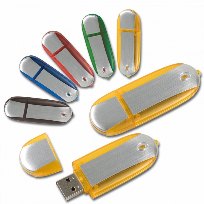 Art. PB4924 Chiavette USB con parte centrale in colore alluminio ed il resto in colore.