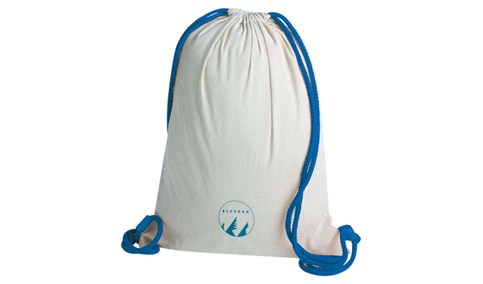Art. GM208PP Zainetti sacca realizzata in 100% cotone 130gr. Doppia corda di chiusura in cotone e colore naturale. Presenta inoltre rifiniture cucite.