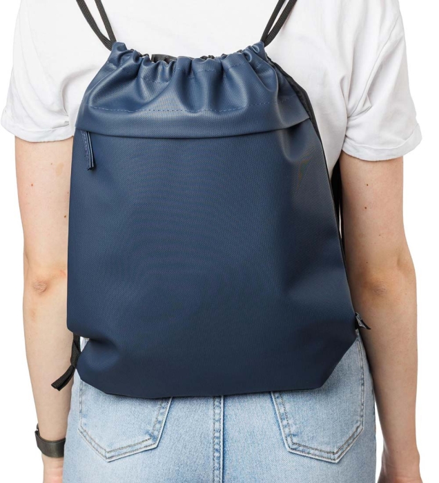 Art. GV2378516 Zaino con chiusura a coulisse, realizzato in poliestere rPET 600D, con rivestimento idrorepellente in PU nella parte anteriore. Dotato di tasca nascosta frontale con cerniera e ampio scomparto principale. Include due ulteriori scomparti con tasche frontali e interne per una migliore organizzazione.