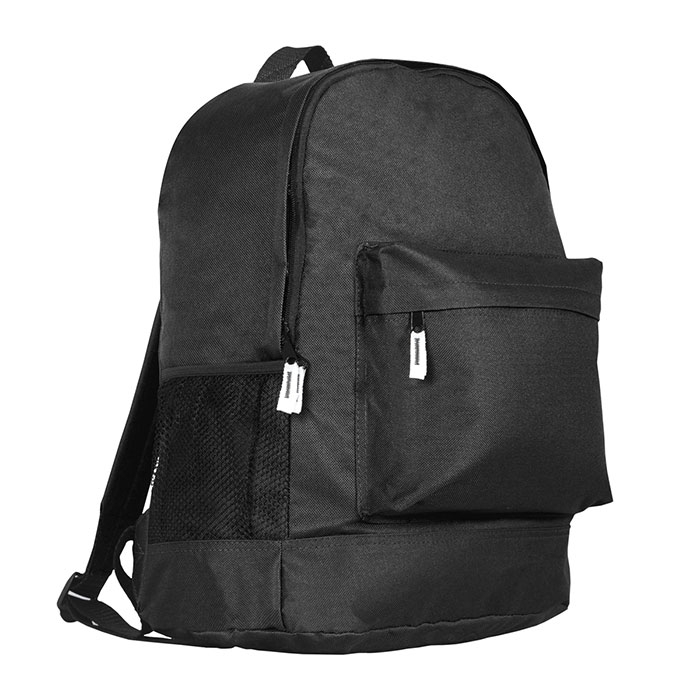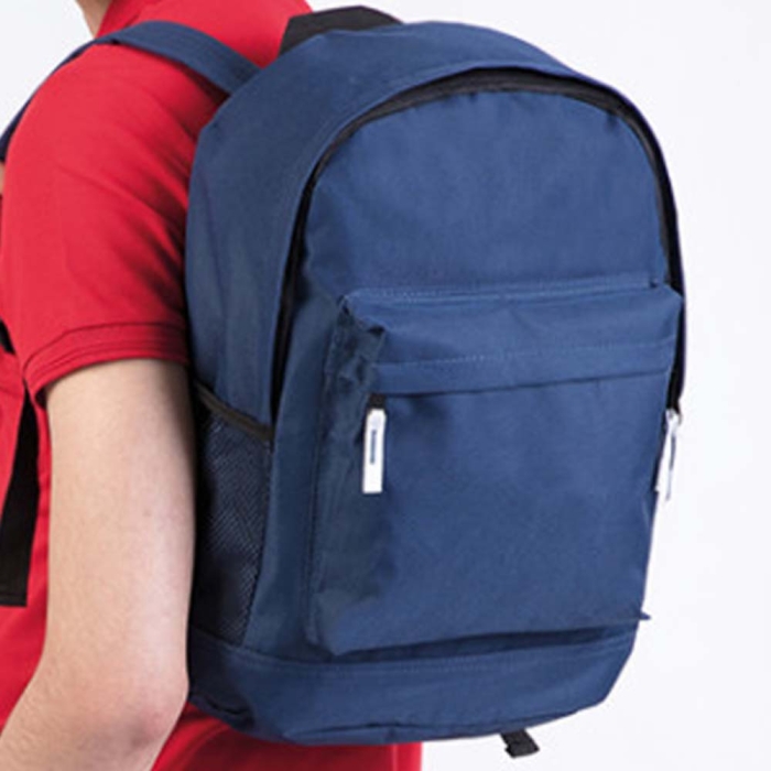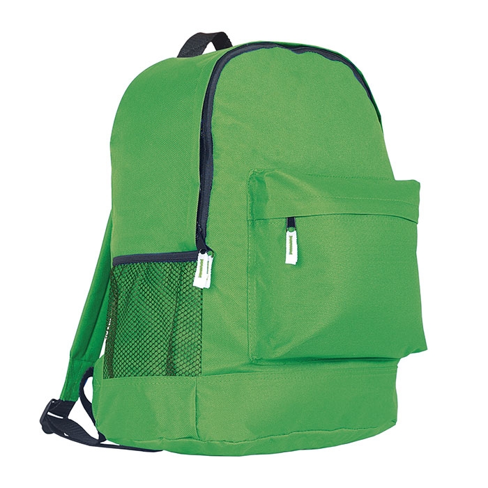 Art. GM300PPG Zaino basico realizzato in materiale nylon 600D per maggiore durabilità. Presenta una tasca anteriore e laterale traforata per organizzare oggetti di uso frequente. Gli spallacci e il retro sono imbottiti.