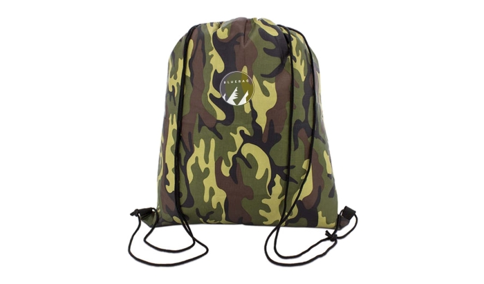 Art. CF-G081-CM Zainetto sacca camouflage con chiusura a strozzo e corde per il trasporto.