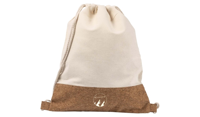Art. GV9823 Zaino a sacca. Realizzato in cotone 250 gr./m² con base in sughero. Presenta una chiusura a coulisse.