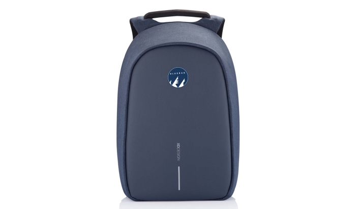 Art. X705-29 Zaino antitaccheggio in RPET. Protezione antitaglio, cerniere e tasche nascoste garantiscono la sicurezza dei vostri effetti personali. Dotato di una porta di ricarica USB integrata, di tessuto idrorepellente, di inserti riflettenti e di una cinghia per il trasporto dei bagagli. Scomparto imbottito per trasporto di un laptop da 15,6’.