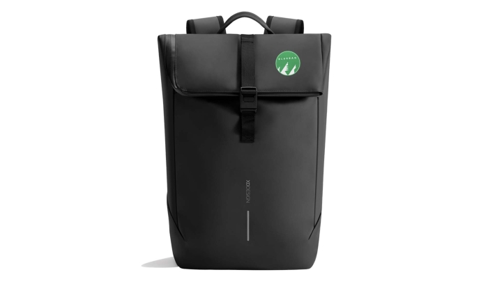 Art. X706-26 Zaino antitaccheggio nero. L'esclusivo scomparto principale con apertura a L, completo di una sezione espandibile e di un ampio spazio porta PC da 16’. Il design antifurto, unito a una cerniera metallica autobloccante, garantisce la sicurezza dei vostri effetti personali. Tasca posteriore e di una tasca dedicata per le bottiglie d'acqua. Idrorepellente. Realizzato in poliestere riciclato.