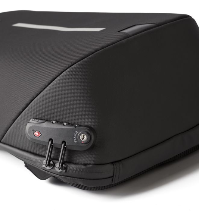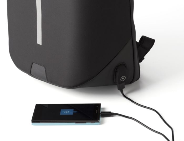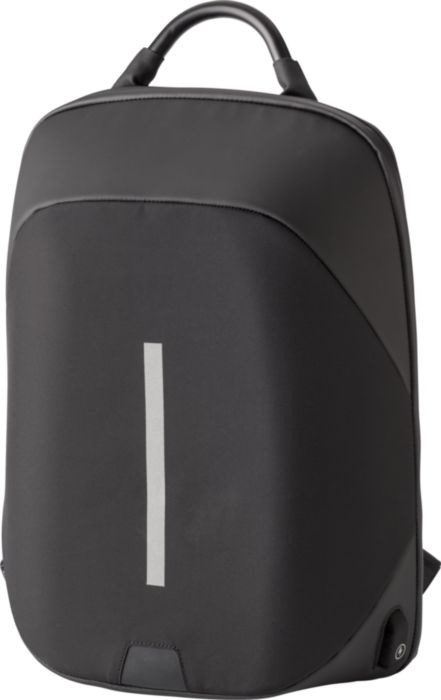 Art. GV0266 Zaino antitaccheggio portacomputer realizzato in nylon 1200D, incluso scomparto per laptop imbottito 15 pollici, schienale imbottito, spallacci imbottiti e regolabili, chiusura con tre lucchetti a combinazione digitale, cavo per porta USB, banda riflettente.