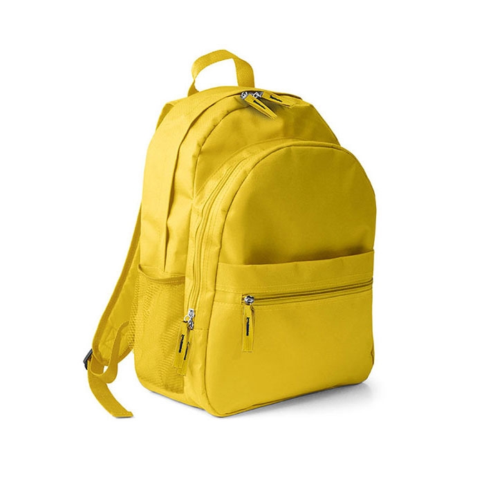 Art. GM27657 Lo zaino realizzato in resistente poliestere 600D. Ampia tasca frontale con velcro e ulteriore tasca con zip, spallacci regolabili, schienale imbottito, tira zip in tessuto con impunture in contrasto. Maniglia in nastro. Disponibile in tutte le colorazioni.