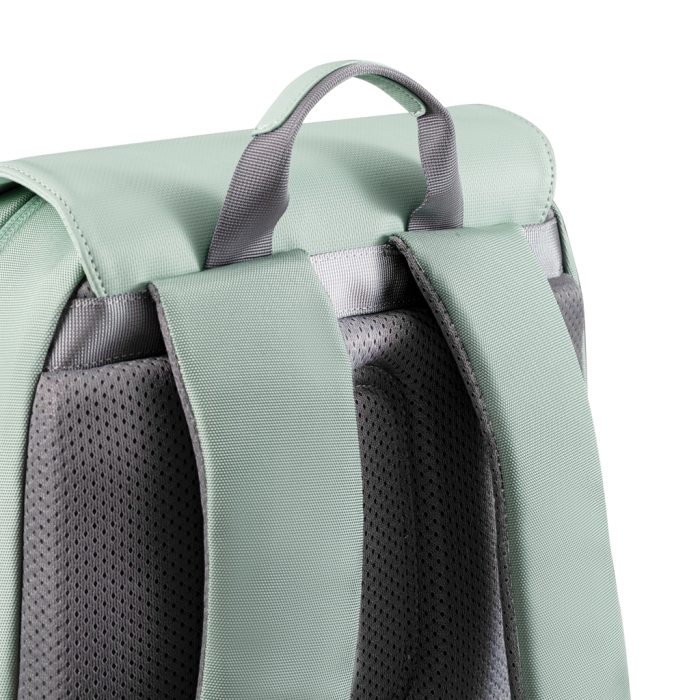 Art. X705-98 Zaini porta pc antitaccheggio femminili, realizzato con materiali di alta qualità, tra cui il tessuto rPET 1200D e il PU testurizzato. Dotato di un design antitaccheggio con chiusura Fidlock e cerniere twist-lock ha una tasca per computer portatile da 16’ garantisce una protezione per gli apparecchi tecnologici, ha una tasca con protezione RFID offre sicurezza per carte di credito e documenti.