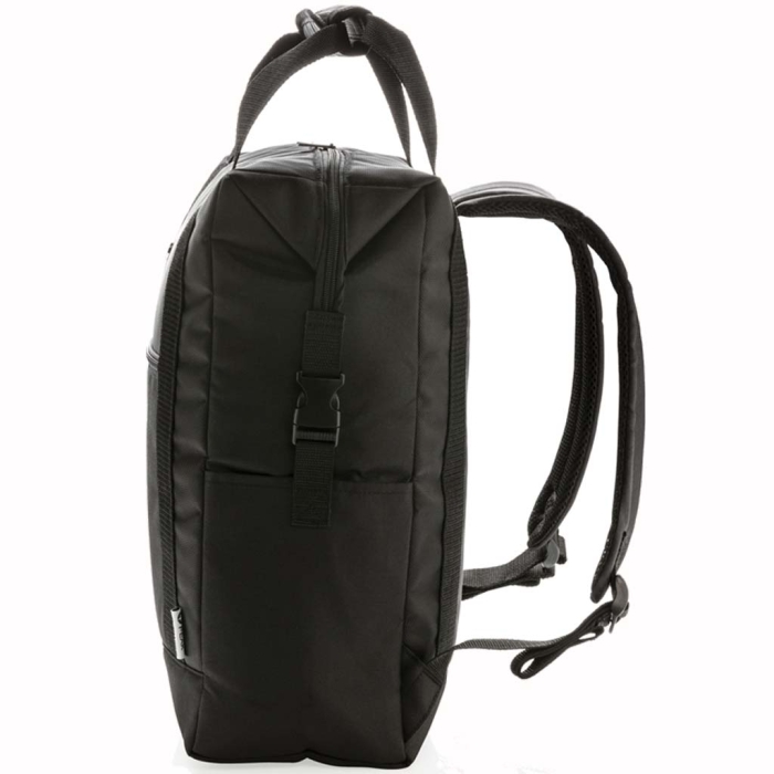 Art. X422-19 Borsa/zaino termica deluxe in poliestere 1680D e 600D con scomparto centrale super spazioso e tasca centrale con cerniera. Doppio manico rinforzato. Include cavatappi. Può contenere fino a 28 lattine. Isolamento in PEVA.