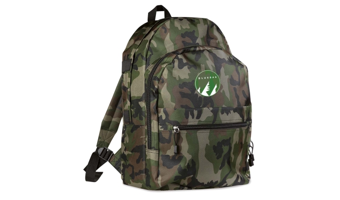 Art. PB35166-CM Zaino camouflage economico in poliestere 600D. Dotato di due ampi scomparti frontali, una tasca frontale con chiusura a cerniera e una con chiusura in velcro, rete laterale porta bottiglia e fasce elastiche laterali porta ombrello. Lo schienale e gli spallacci sono imbottiti per un maggiore comfort durante il trasporto. È possibile personalizzare lo zaino con stampa serigrafica o con trasferimento termico.