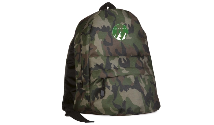 Art. PB35162-CM Zaino mimetico realizzato in poliestere 600D. Presenta spallacci imbottiti con porta cellulare, tasca esterna con chiusura lampo e maniglia per trasporto a mano. È possibile personalizzare lo zaino con stampa serigrafica o trasferimento termico.