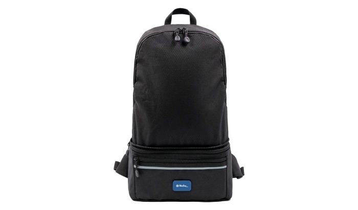 Art. PB35459Q Zaino elegante pieghevole nell’astuccio incorporato, ha un design lineare e giovanile, pratico e leggero, con scomparto principale con doppia chiusura a zip e con moschettone in alluminio. Tasca sul retro e con spallacci a nastro.