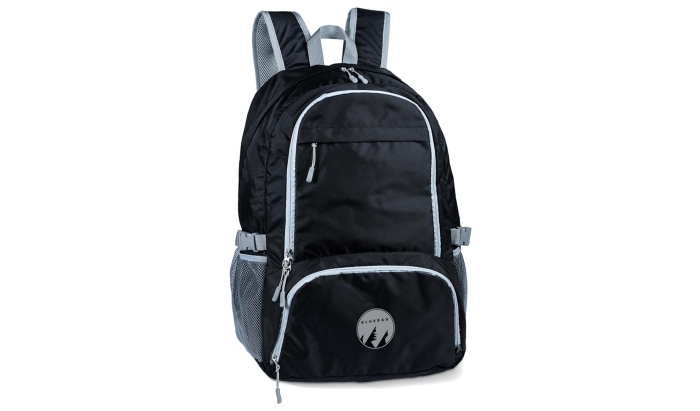 Art. PB35109 Zaino trekking in RPET 300D, offre ampio spazio e praticità grazie alle sue tre tasche frontali con chiusura a zip e due tasche a rete laterali portabottiglie è dotato di spallacci e schienale imbottiti. È personalizzabile con stampa serigrafica.