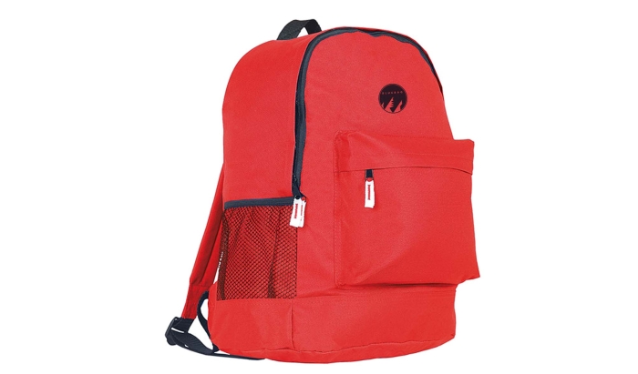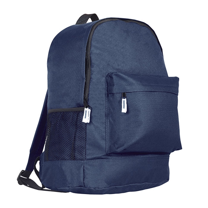 Art. PB564Y con tre tasche frontali con chiusura a zip, due tasche a rete laterali portabottiglie, spallacci e schienale imbottiti.