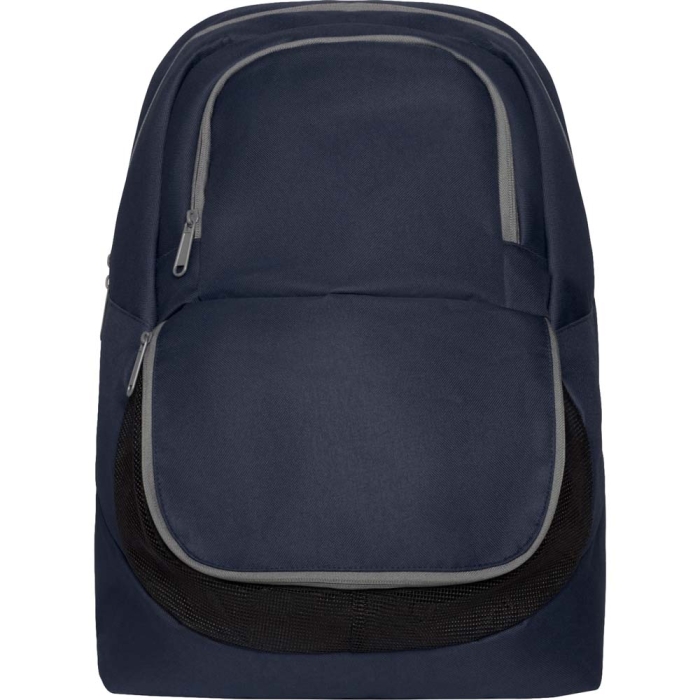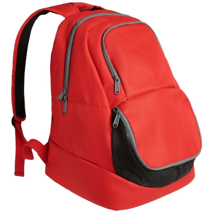 Art. ST8231 Zaino sportivo con tasca anteriore progettata per trasportare un paio di scarpe. Design ergonomico presenta, doppi spallacci rinforzati e cinghia speciale per le mani e schienale imbottito. Tasca principale con doppio tiretto. Cerniere grigie a contrasto con dettagli neri.