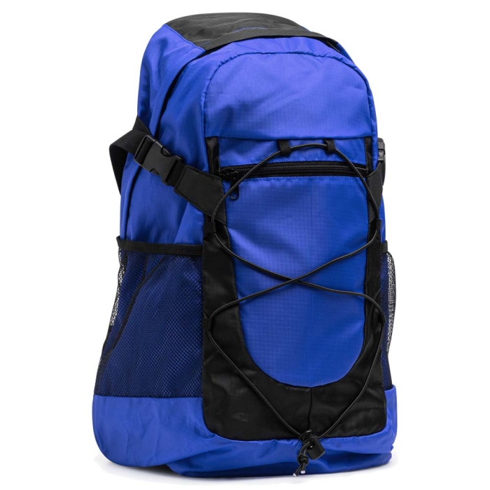Art. GM21683 Zaino trekking leggero e compatto, resistente ma leggero, ideale per viaggi, tempo libero, gite fuori porta ed escursioni. Composto da uno scomparto principale con chiusura a zip e uno scomparto frontale accessoriato con diverse tasche interne. Dotato di due tasche laterali in rete. Spallacci e schienale imbottiti, maniglia superiore in nastro.